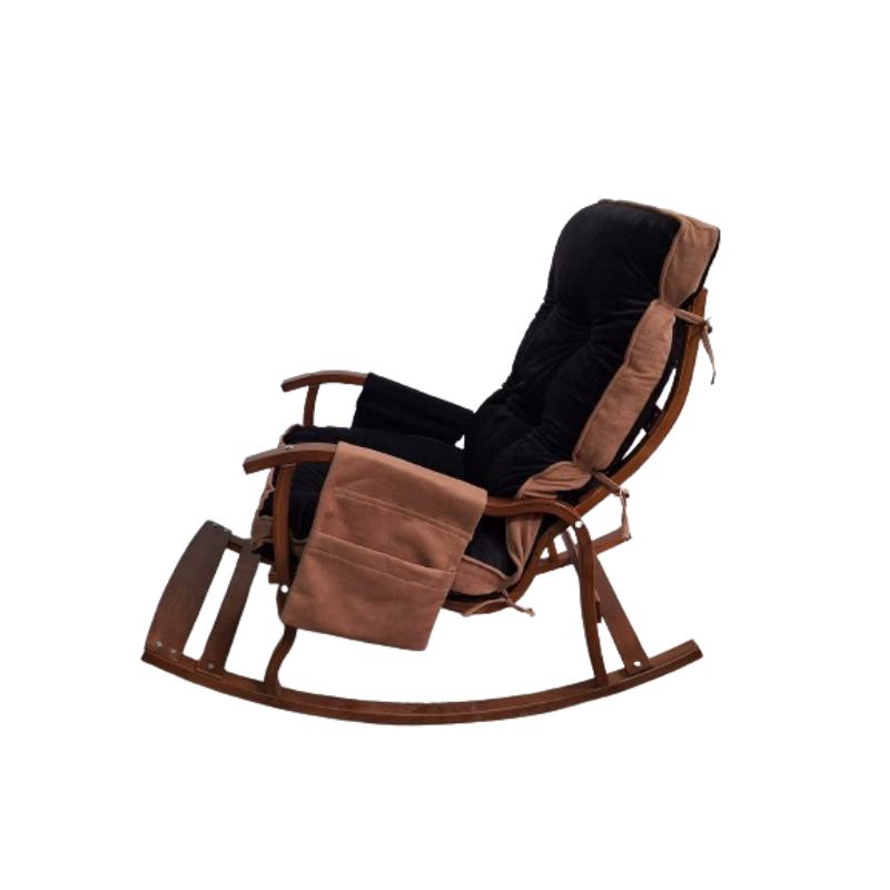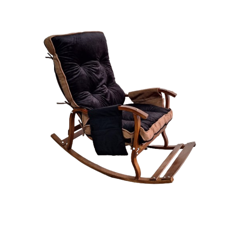 Mobildeco CEVİZ Sultan Lüx Ahşap Sallanan Sandalye Çift Renk ve Çift Cepli BABYFACE SİYAH/SİYAH