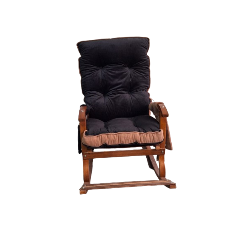 Mobildeco Ceviz Sultan Lüx Ahşap Çift Minderli Çift Cepli Sallanan Sandalye BABYFACE SİYAH/SİYAH