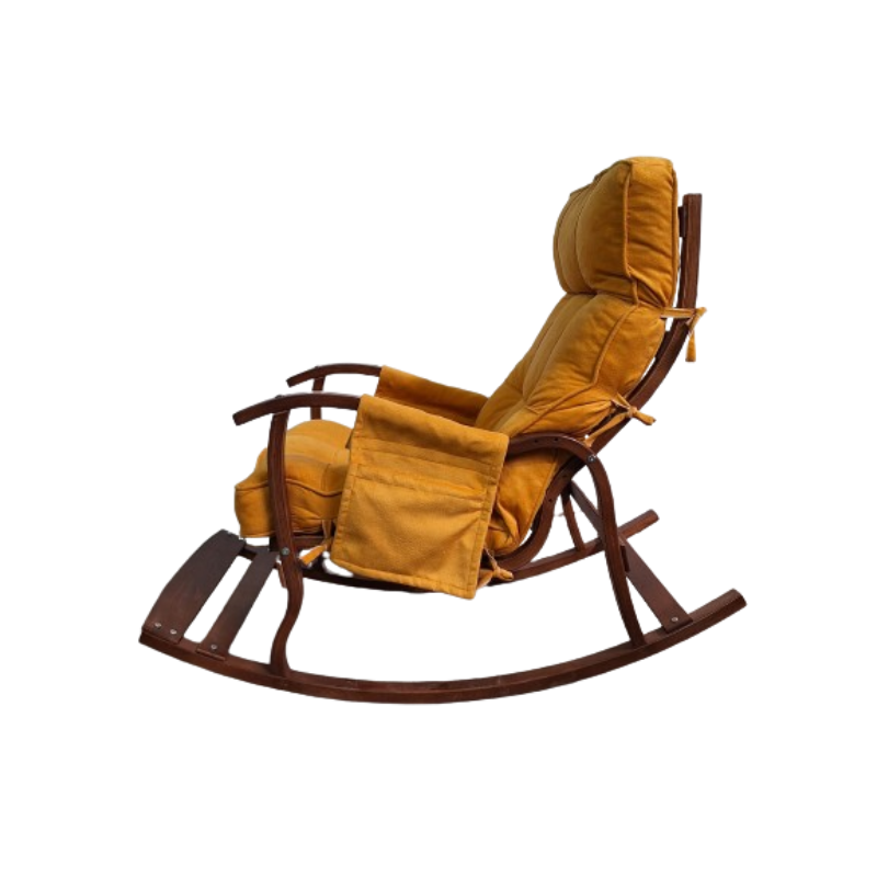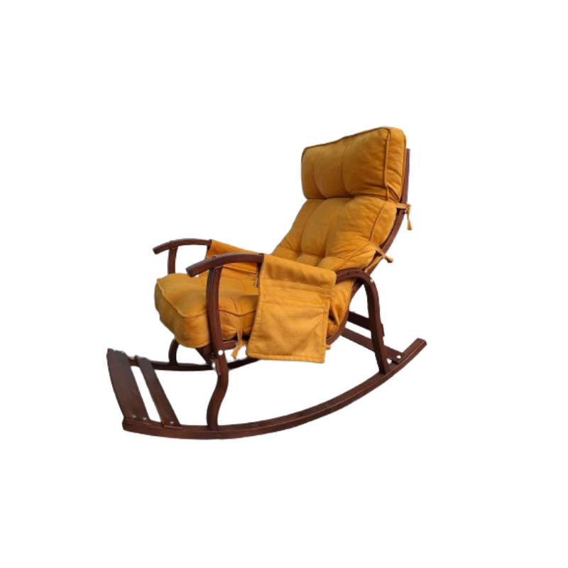 Mobildeco CEVİZ Sultan Lüx Ahşap Sallanan Sandalye Çift Renk ve Çift Cepli SARI/SARI