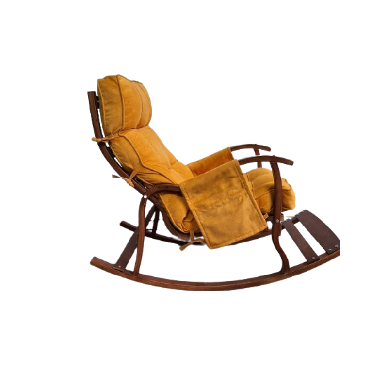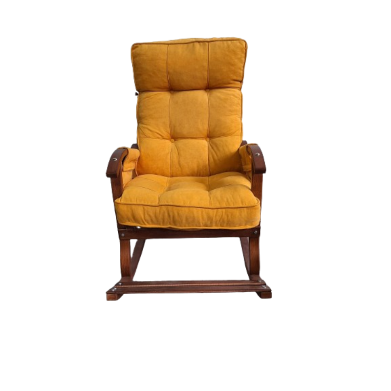 Mobildeco Ceviz Sultan Lüx Ahşap Çift Minderli Çift Cepli Sallanan Sandalye SARI/SARI