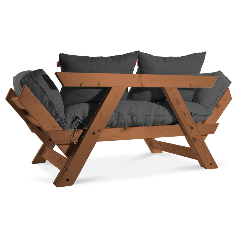 Mobildeco Kombin Wood Ahşap İki Kişilik Kanepe (Koyu Ceviz/Füme)