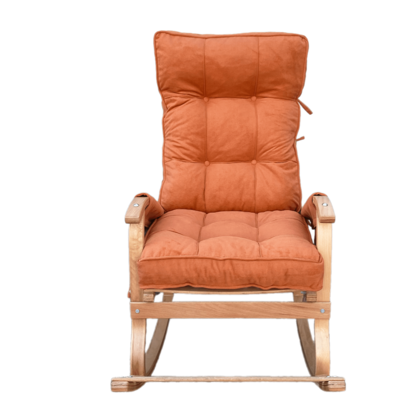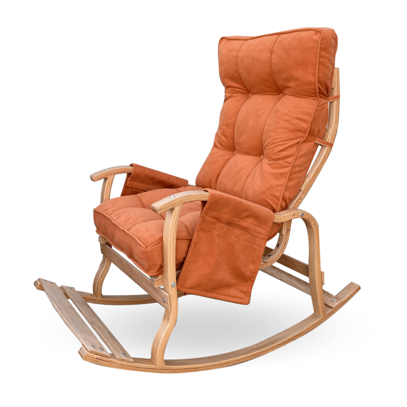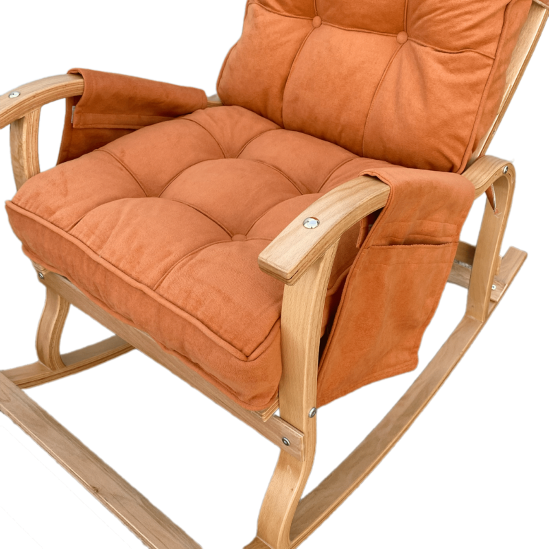 Mobildeco CEVİZ Sultan Lüx Ahşap Sallanan Sandalye Çift Renk ve Çift Cepli KİREMİT/KİREMİT