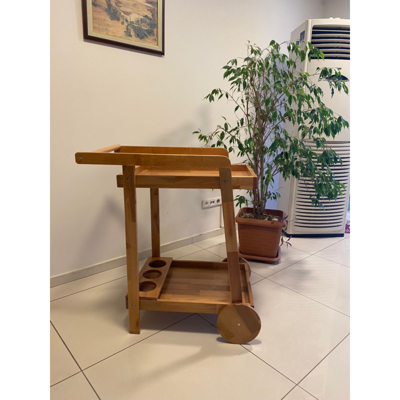 Ev dekorasyon stiline uyan tasarımı ile salonunuza ayrı bir güzellik katacak olan ahşap servis arabası modelimiz çeşitli mutfak eşyalarına ulaşmayı kolaylaştırır. Mutfak Servis Arabası hem işlevsel hem de dekoratif görünümü ile bulunduğu ortama şıklık katar. Geniş salonlarda ahşap dresuar olarak kullanılabilir.